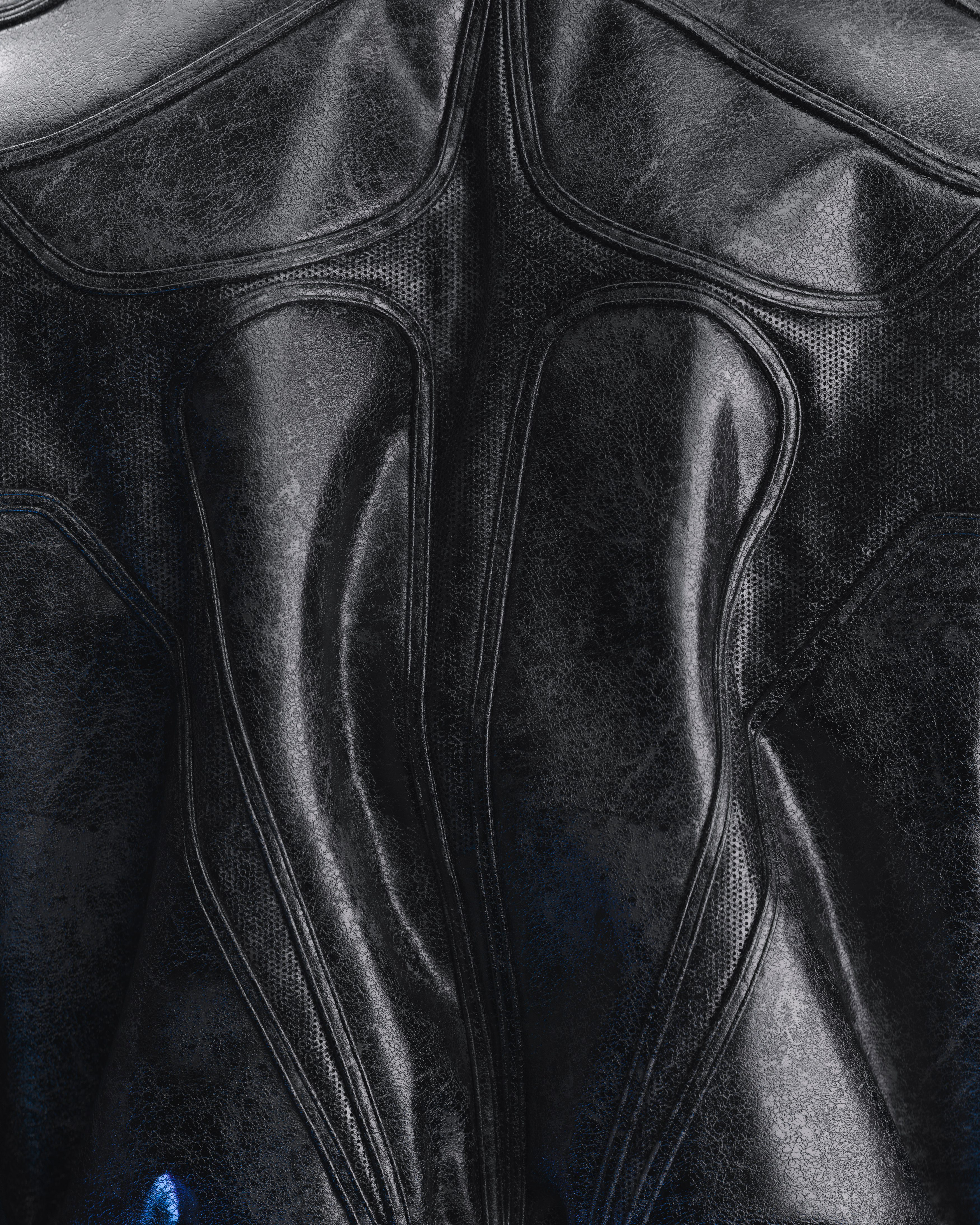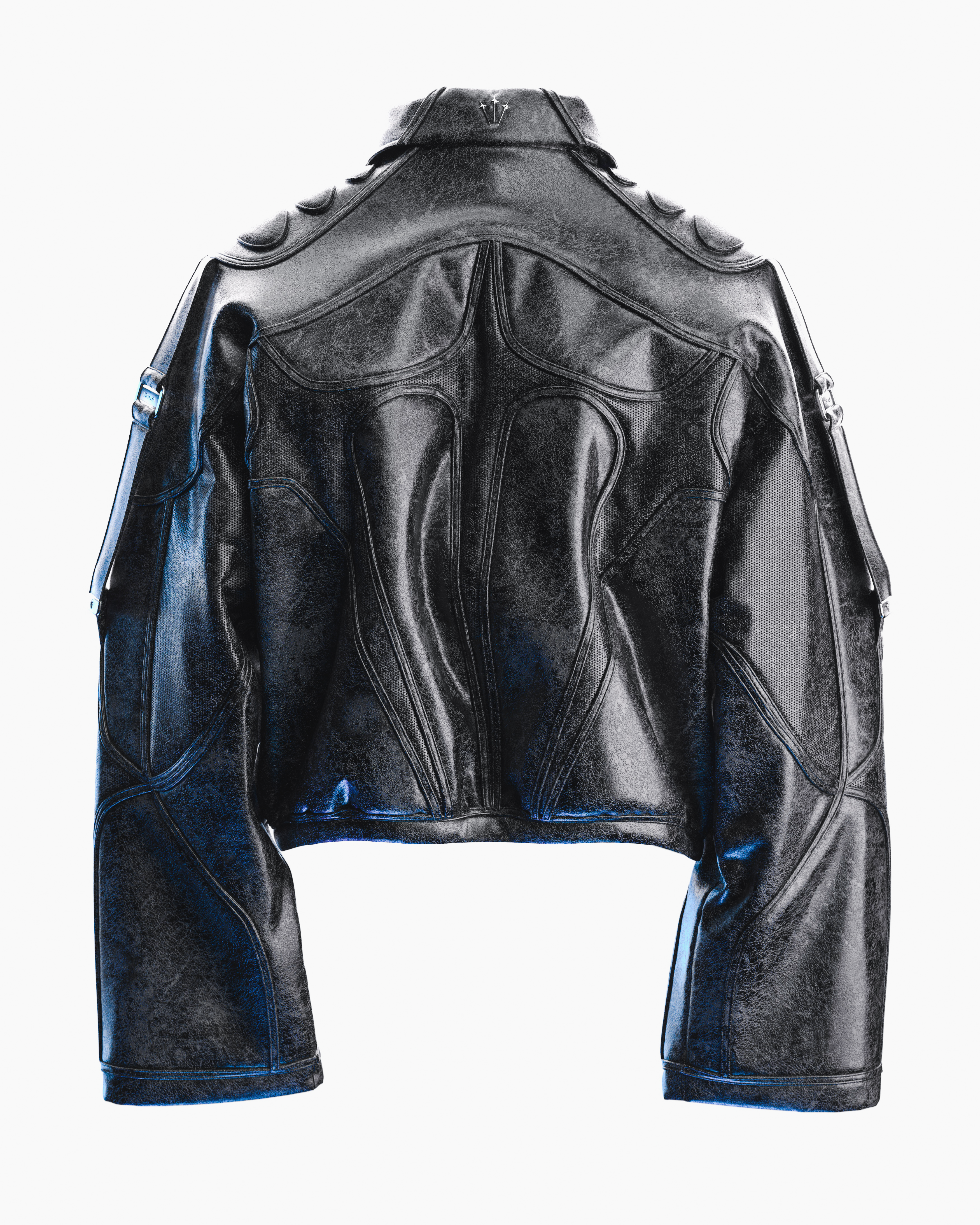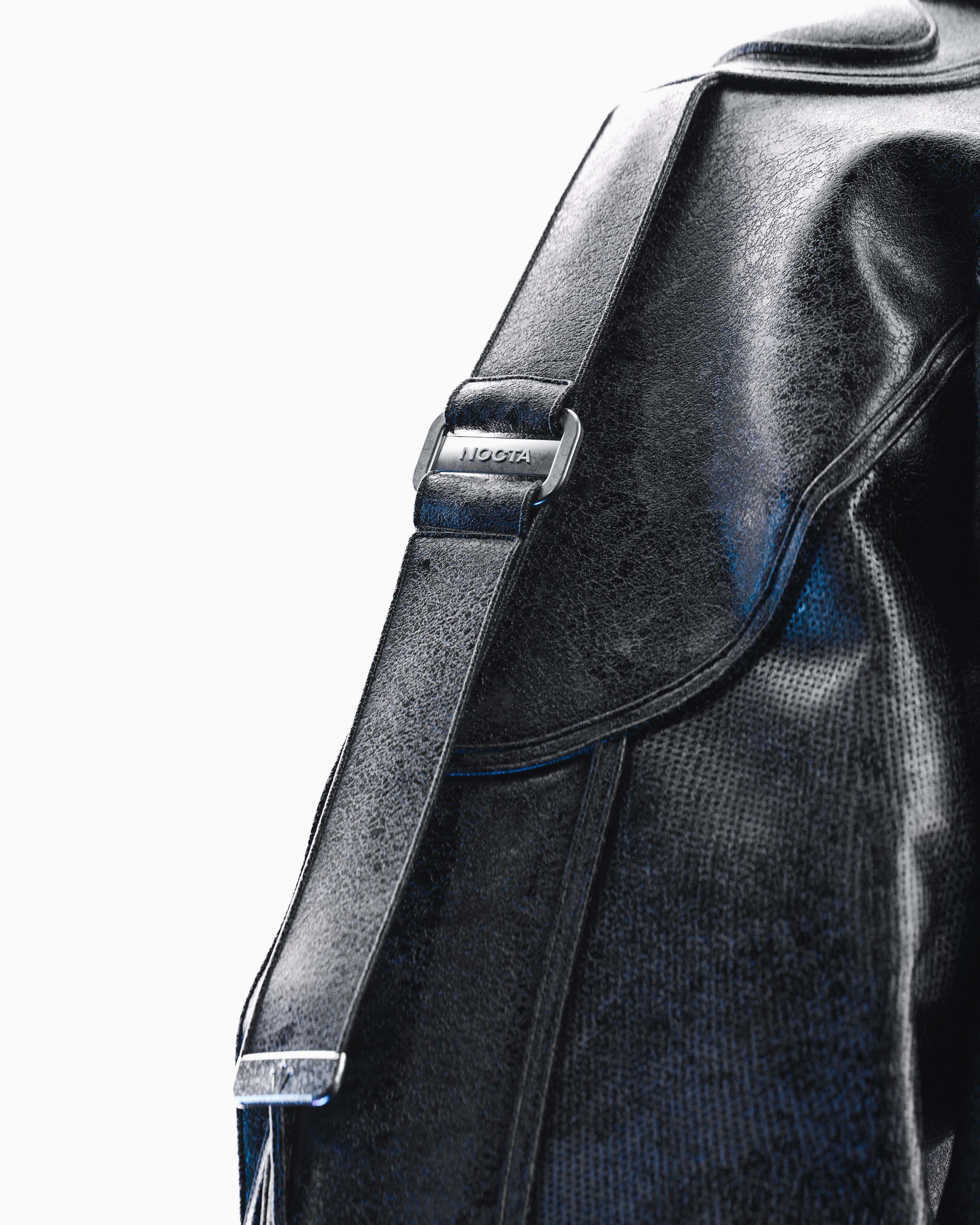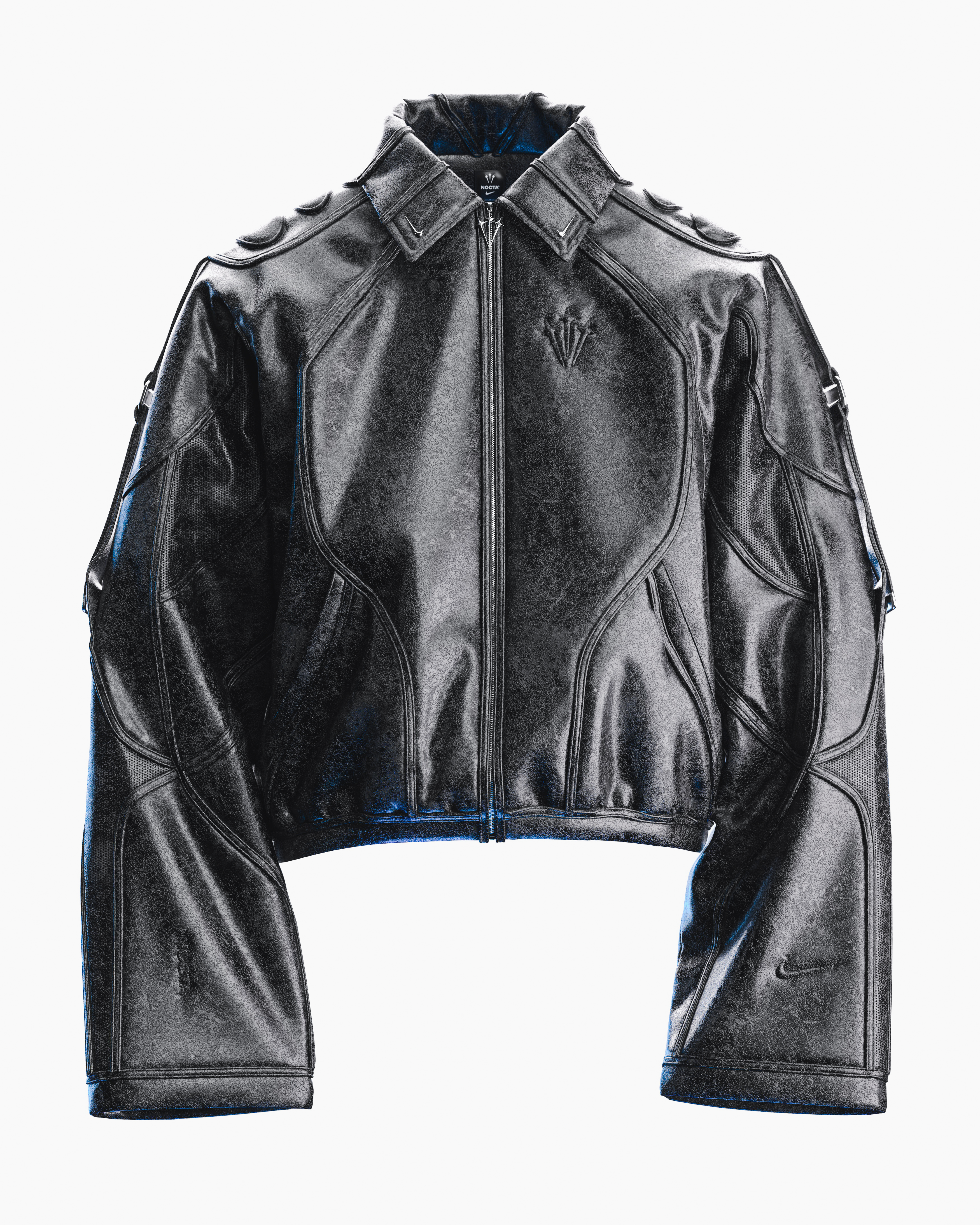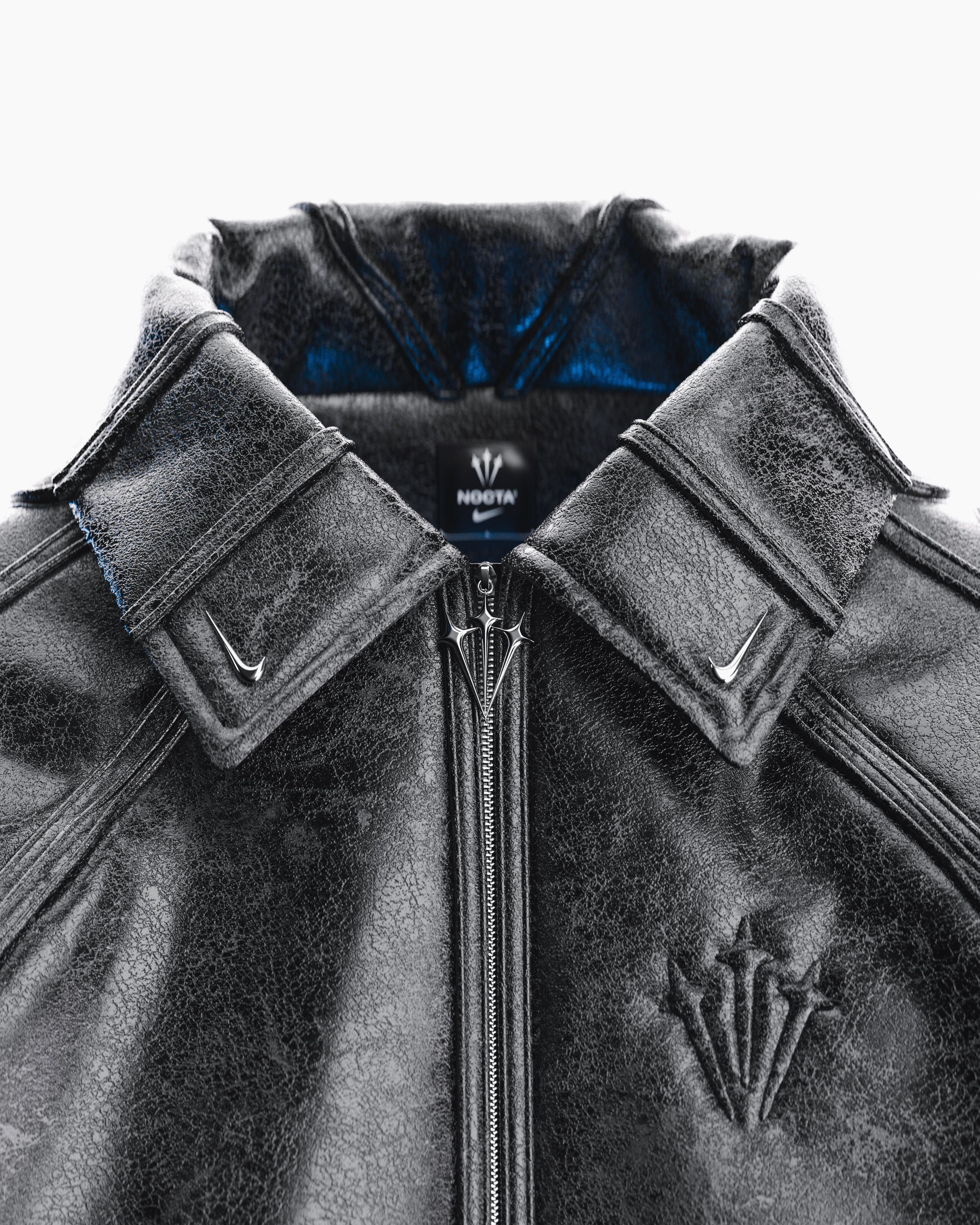 A leather jacket concept for Nocta, following the clean structural lines characteristic of the brand and the dominant black aesthetic used throughout most of its designs. The jacket features personalized detailing across the entire piece, with logos subtly integrated into the construction and overall design
